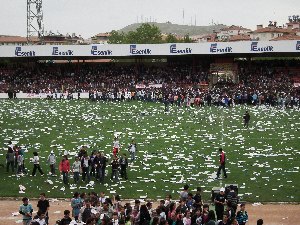 Yürüyüş için toplananların ardından, kapalı çarşının üstünün fotoğrafını çektim. İnönü stadyumunda, Guinness rekorlar kitabına girmek üzere aynı anda 23 bin kişinin Sefiller’den dört sayfayı yüksek sesle okuduktan sonra arkalarında bıraktıkları stadyumun fotoğrafını da çekmiştim. Stadyumun yeşil sahası; kâğıt, köpük ve pet şişeden görünmez olmuştu. Bu kez de kapalı çarşının üstünü, poşet ve pet şişeyle doldurarak yürüyüşe gittiler istasyona doğru.