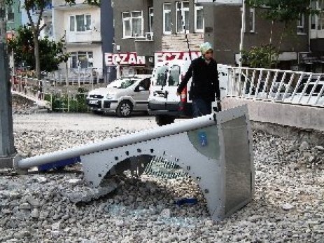 Kökünden sökülerek yüzüstü devrilmiş bir telefon kulübesi. Camları tuz buz olmuş. Telefon makinesinin ahizesi de telefon kulübesi gibi taşların üzerinde yatıyor. Belediye, kaldırım çalışması yapıyor, kolay mı? Telefon kulübesini de kırar döker, gencecik ağaçları da kökünden keser atar.